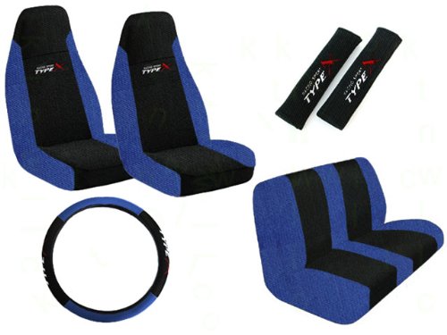 Get in touch with the racer spirit in you! Introducing the Blue Mesh Fabric Racing Sport Type X Seat Covers set! The Blue Mesh Fabric Racing Sport Type X Seat Covers set includes 1 steering wheel cover, 2 bucket seat covers, 1 bench seat cover (1 top and 1 bottom), and 2 seat belt shoulder pads. The steering wheel cover provides a soft comfortable grip and fits most standard size steering wheels (14.5 - 15.5 inch.) The steering wheel cover also protects your steering wheel from cracking or peeling. The shoulder belt pads provide relief from the stress of the seat belts. The bucket seat covers are made from 100% Polyester material, and are designed to fit most high and low-backed bucket seats. he mesh pattern of the polyester fabric enhances breathability to maximize comfort and air circulation. It can be installed over or under the headrest on vehicles with removable headrests, and some vehicles with armrests may need to have them removed and reinstalled for a semi-custom fit. These front bucket seat covers come with elastic straps and hooks that will snug and secure it under the seat. * WILL NOT FIT SEATS WITH ANY OF THE FOLLOWING: 1. INTEGRATED SEAT BELT. 2. SEATS WITH SIDE AIRBAG. 3. OVERSIZED SEAT (captain seat). 4. SEATS WITH ARMREST (captain seat). Fill your car with the Blue Mesh Fabric Racing Sport Type X Seat Covers set today!Check Price Now!